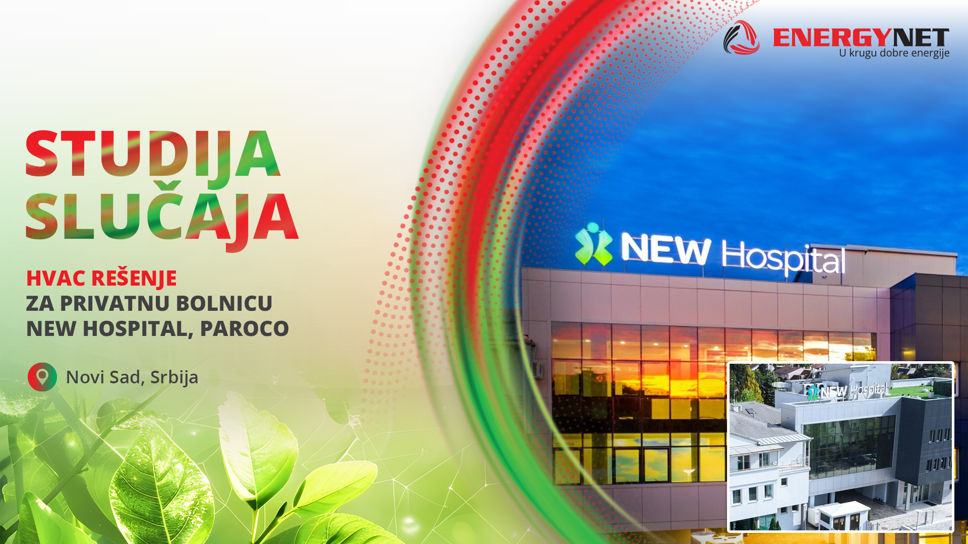 U zdravstvenim ustanovama, kvalitet vazduha i stabilnost klimatskih uslova direktno utiču na bezbednost pacijenata i efikasnost medicinskog osoblja. Dok je u bolesničkim sobama i ordinacijama prioritet komfor i pouzdana ventilacija, operacione sale zahtevaju najviše standarde sterilnosti i kontrolisane uslove. Upravo sa ovim izazovima suočila se privatna bolnica NEW Hospital, Paroco u Novom Sadu, koja je Energy Net-u poverila projektovanje i implementaciju kompletnog HVAC sistema.
